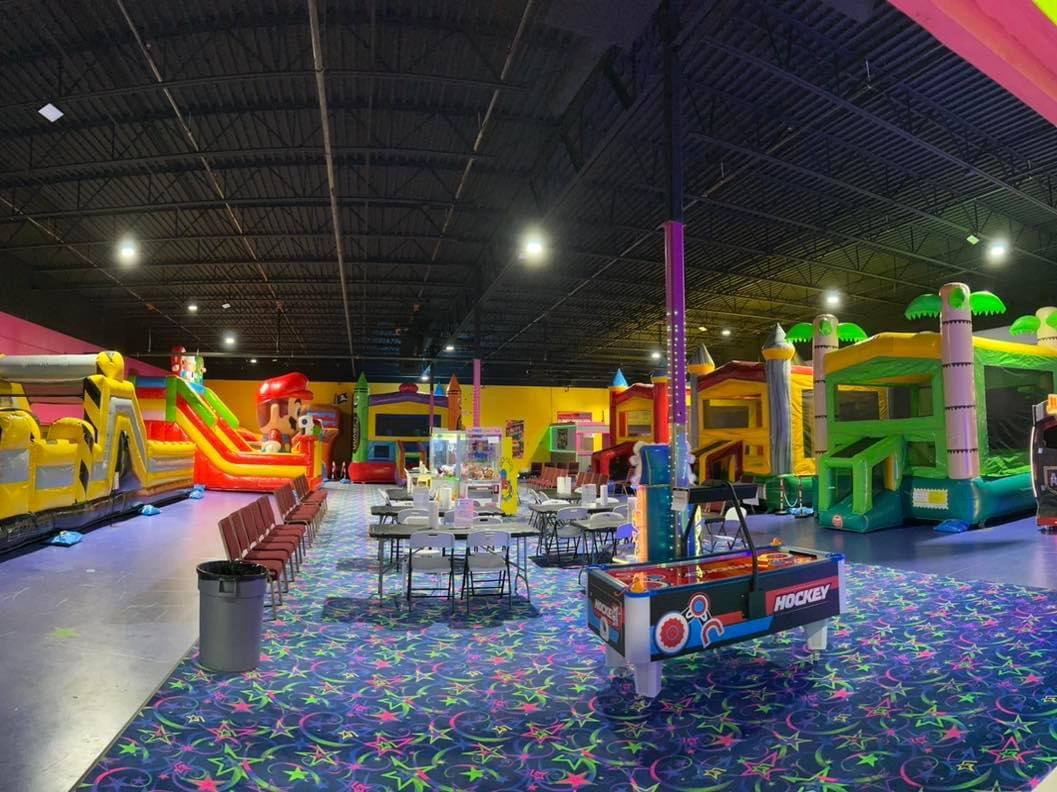We have Bounce houses, Arcade games, slides, obstacle course, concessions with Hot food and a gift shop!!